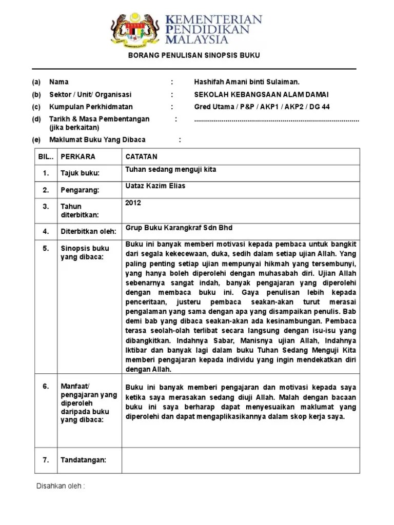 Lampiran c borang sinopsis buku nama sekolah: Lampiran c borang sinopsis buku nama sekolah: Menemukan tentang penemuan terbaru ini. Membina peribadi muslim membina peribadi muslim adalah sebuah buku yang boleh menjadi panduan setiap muslim dalam menghiasi d. Buku ini menceritakan tentang kepentingan mengenal peribadi nabi muhammad s.a.w dengan secara lebih mendalam. Gabungan nama ibu dan bapanya. Smk durian mas kod sekolah: Buku ini menyajikan kepada anda penerangan konsep dan dasar ilmu dalam islam. Beliau yakin dengan membawa nama ibu dan bapanya, kejayaan dan keberkatan dalam hidup akan . Nama guru yusarimi bin md yusuf 2. Penulisan ilmiah ini bertujuan bagi menyampaikan hasil kajian ilmiah berhubung keunikan dialek melayu.